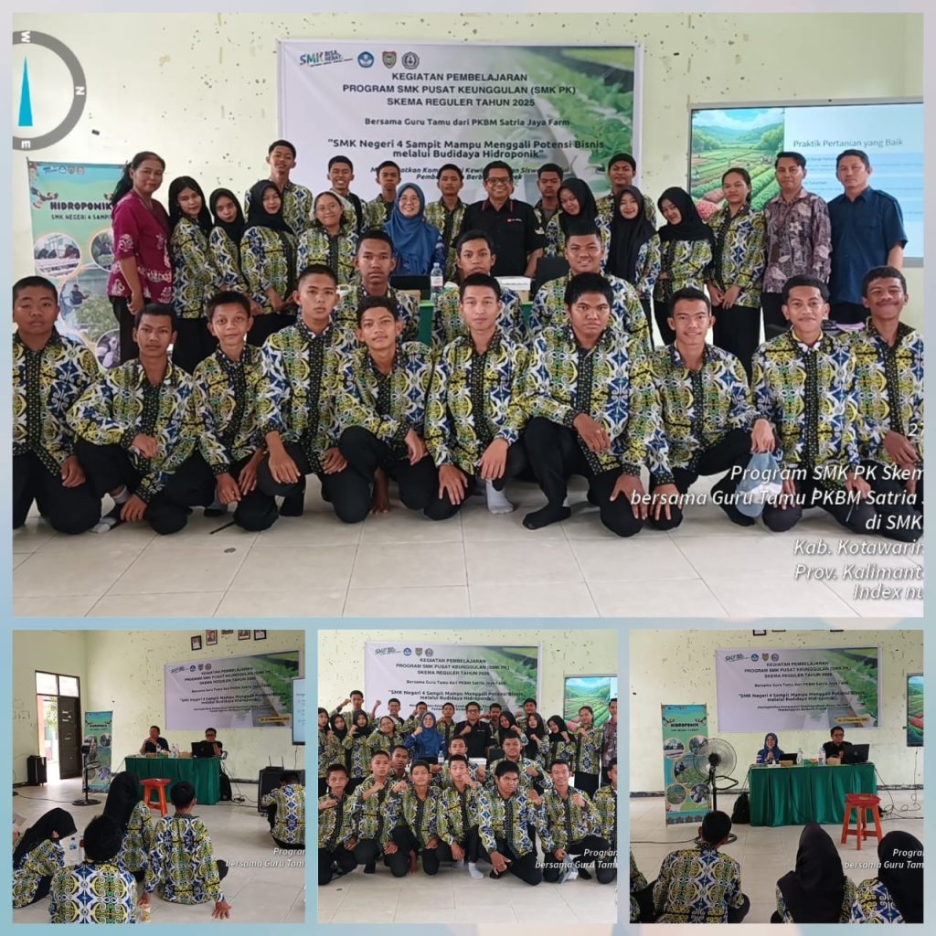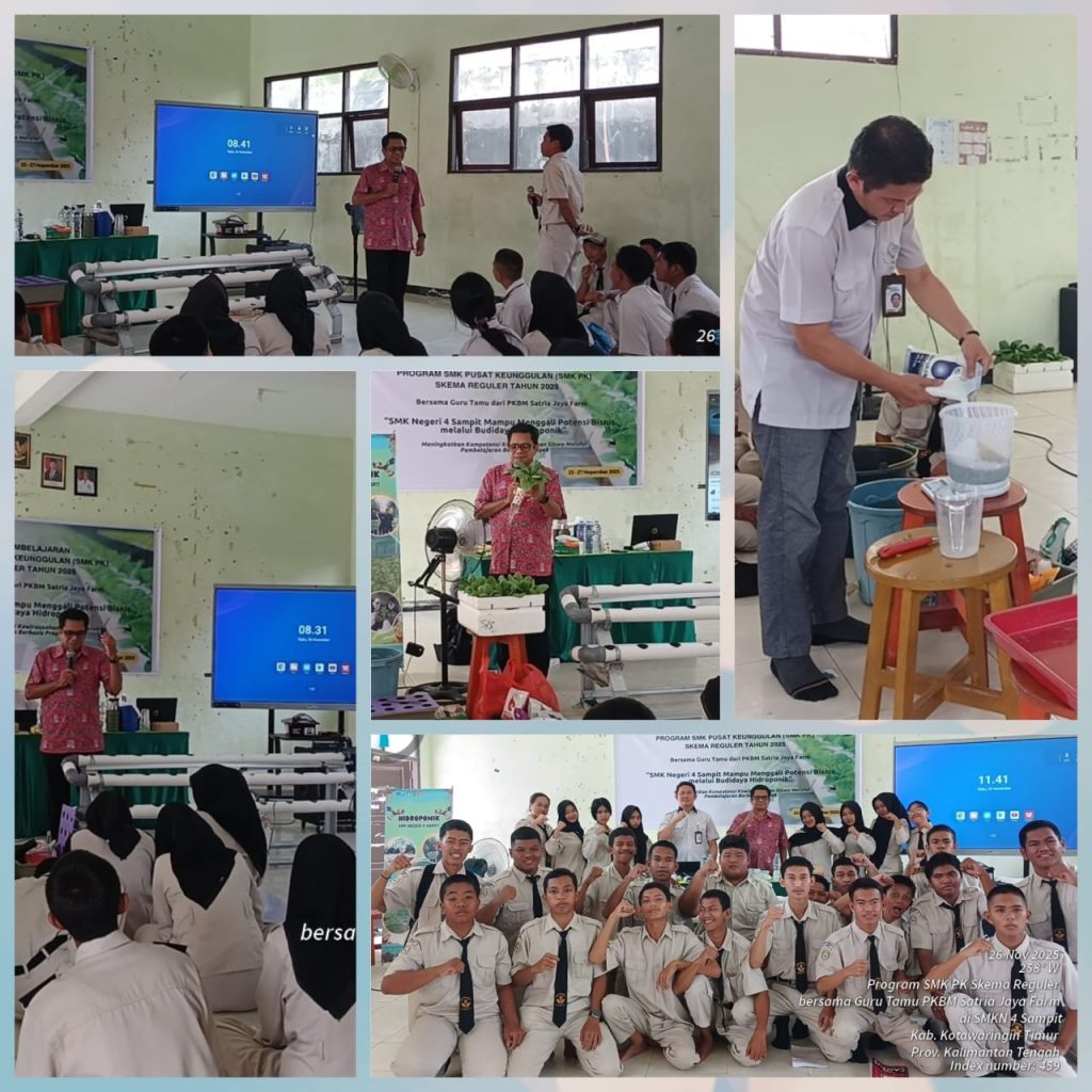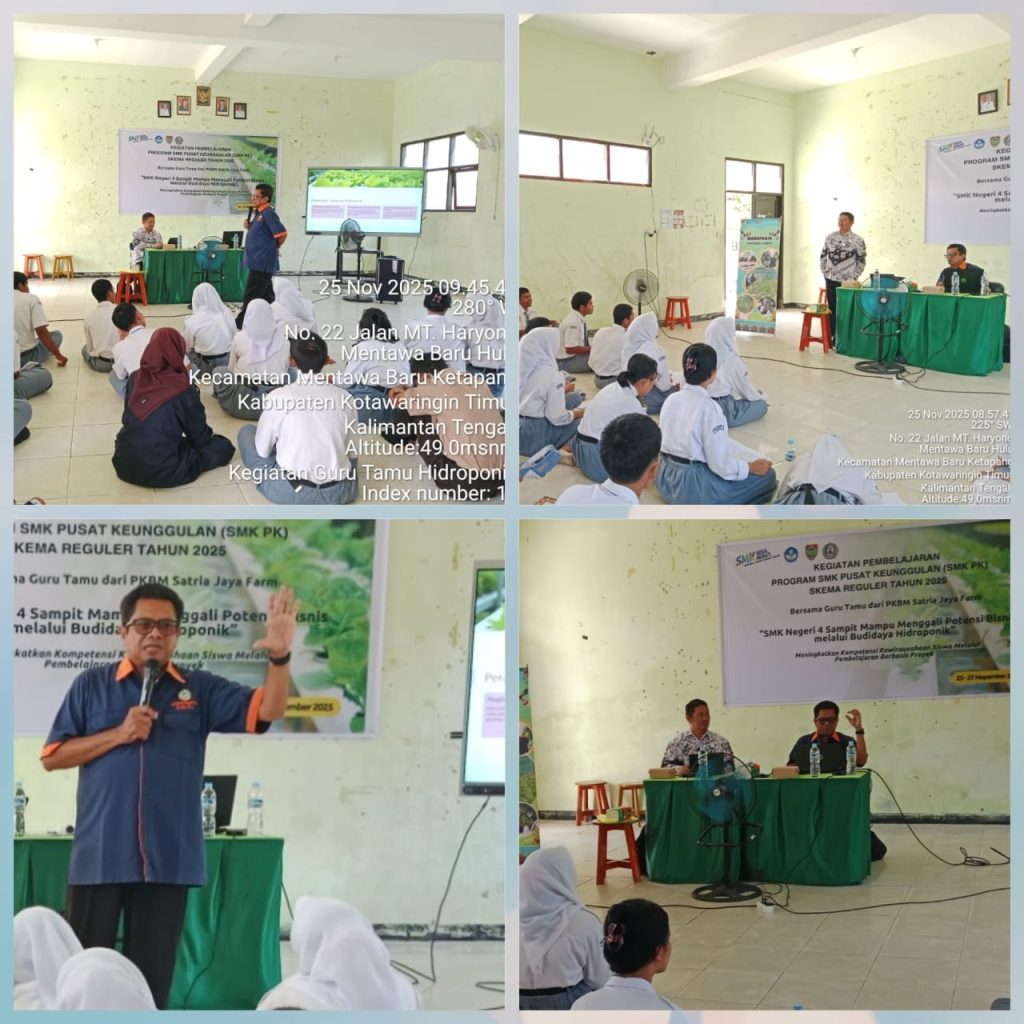 SMK Negeri 4 Sampit kembali menunjukkan komitmennya dalam meningkatkan kompetensi siswa pada bidang pertanian modern melalui kegiatan Pembelajaran Bersama Guru Tamu dari Satri Jaya Farm dan Bapak Eko Supriyanto, SP., MMA. Pelatihan ini berlangsung selama tiga hari, mulai tanggal 25 hingga 27 November 2025, dengan fokus utama Budidaya Tanaman Hidroponik Selada yang Efektif dan Berkelanjutan. Kegiatan ini diikuti oleh siswa kompetensi keahlian Agribisnis Tanaman Pangan dan Hortikultura (ATPH) serta Agribisnis Tanaman Perkebunan (ATP).
